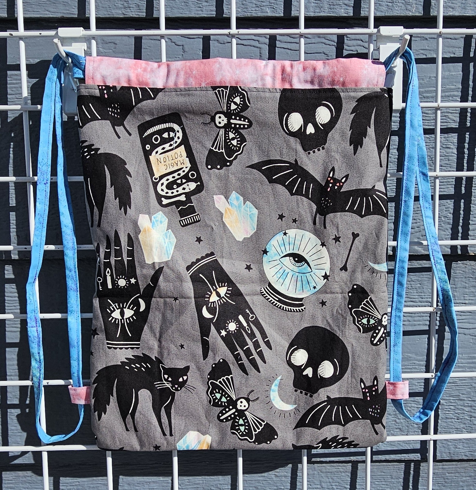 Patchwork Chicken Studio's drawstring tote bags are designed to be comfortable even when worn or carried for long periods of time and carrying lots of items. Can be worn on one shoulder, or backpack style on both shoulders. Fantastic for taking along to events, concerts, festivals, sleepovers, to the pool or beach, etc. Great for everyday use or as a reusable gift bag!