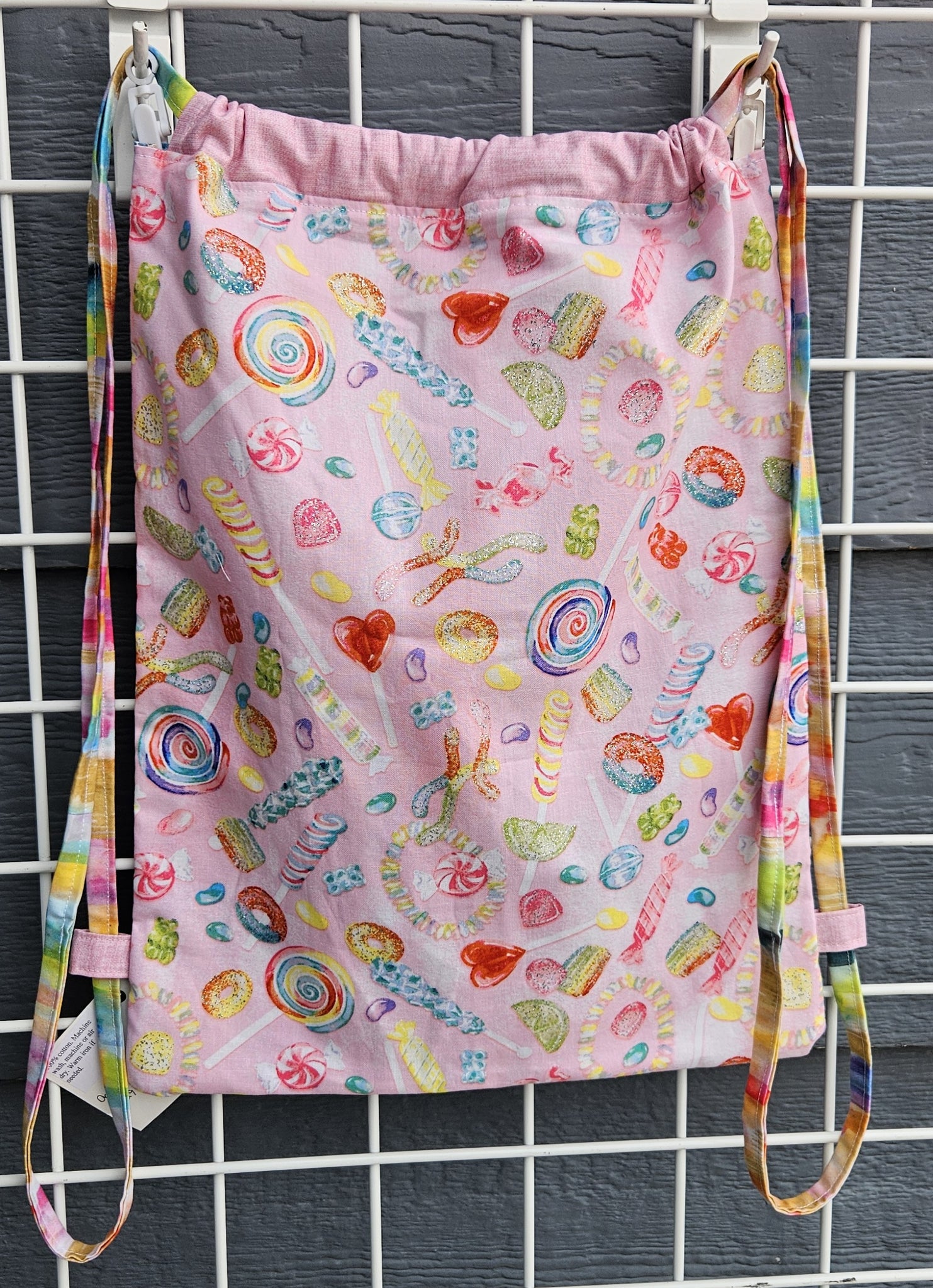 Patchwork Chicken Studio's drawstring tote bags are designed to be comfortable even when worn or carried for long periods of time and carrying lots of items. Can be worn on one shoulder, or backpack style on both shoulders. Fantastic for taking along to events, concerts, festivals, sleepovers, to the pool or beach, etc. Great for everyday use or as a reusable gift bag!